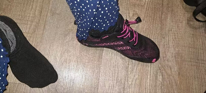 Fantastiques ! J’ai mis une semelle intérieure et depuis, je ne les quitte plus. Elles sont larges à l’avant, ce qui les rend super confortables. La partie centrale est respirante et garde les pieds bien aérés. La semelle est incroyable, elle adhère parfaitement au sol. J’en rachèterai sans hésiter.